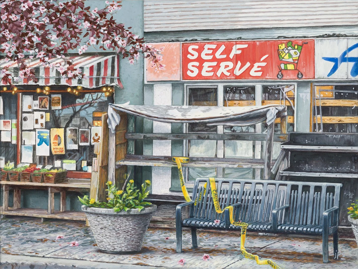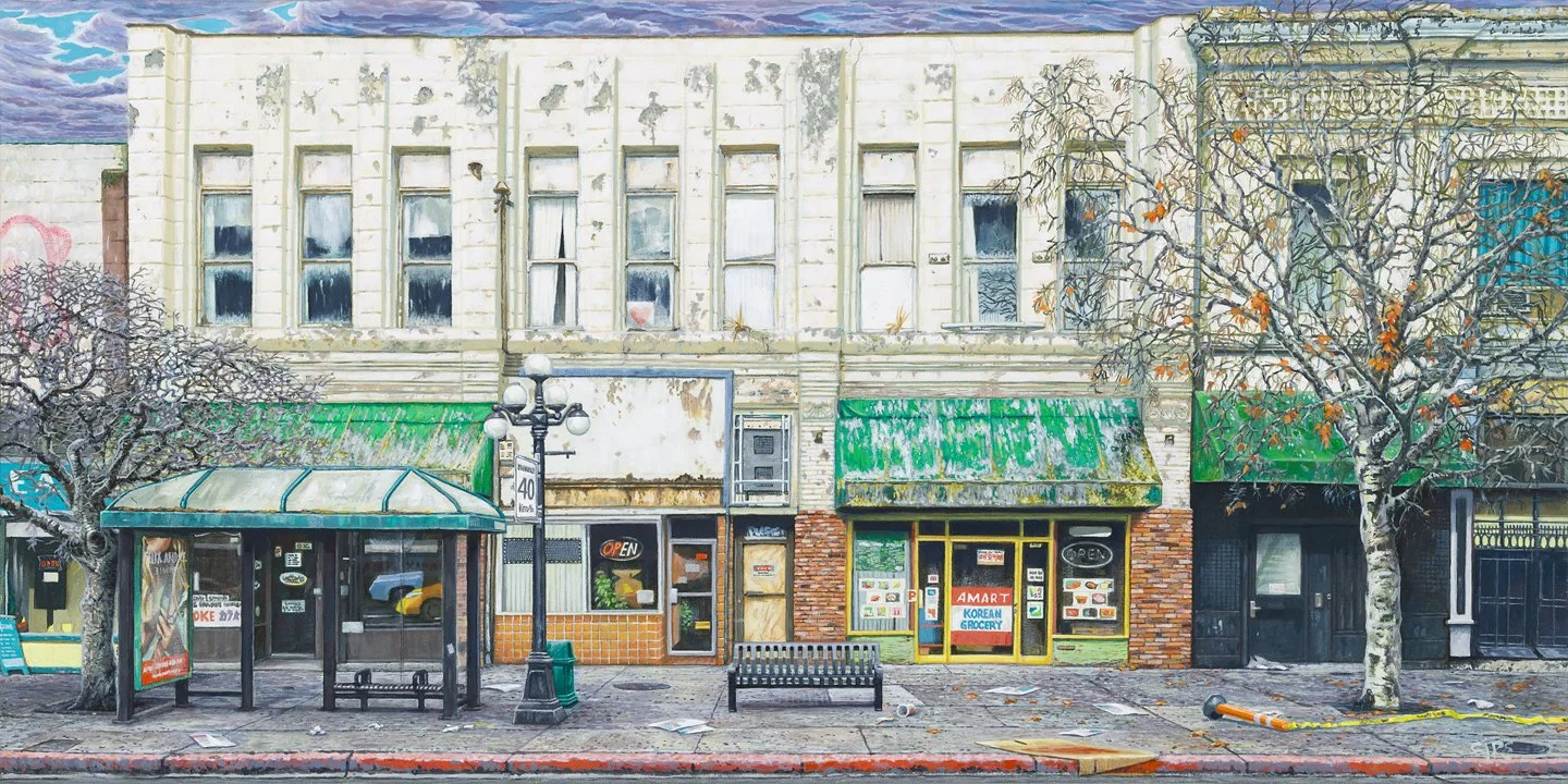 Granville Street in 2022. The pandemic took a major economic toll on the street, and its once-vibrant independent storefronts have been replaced with pawn shops, loan sharks, boarded up windows, and tents. Artistically though, it hasn’t missed a beat.