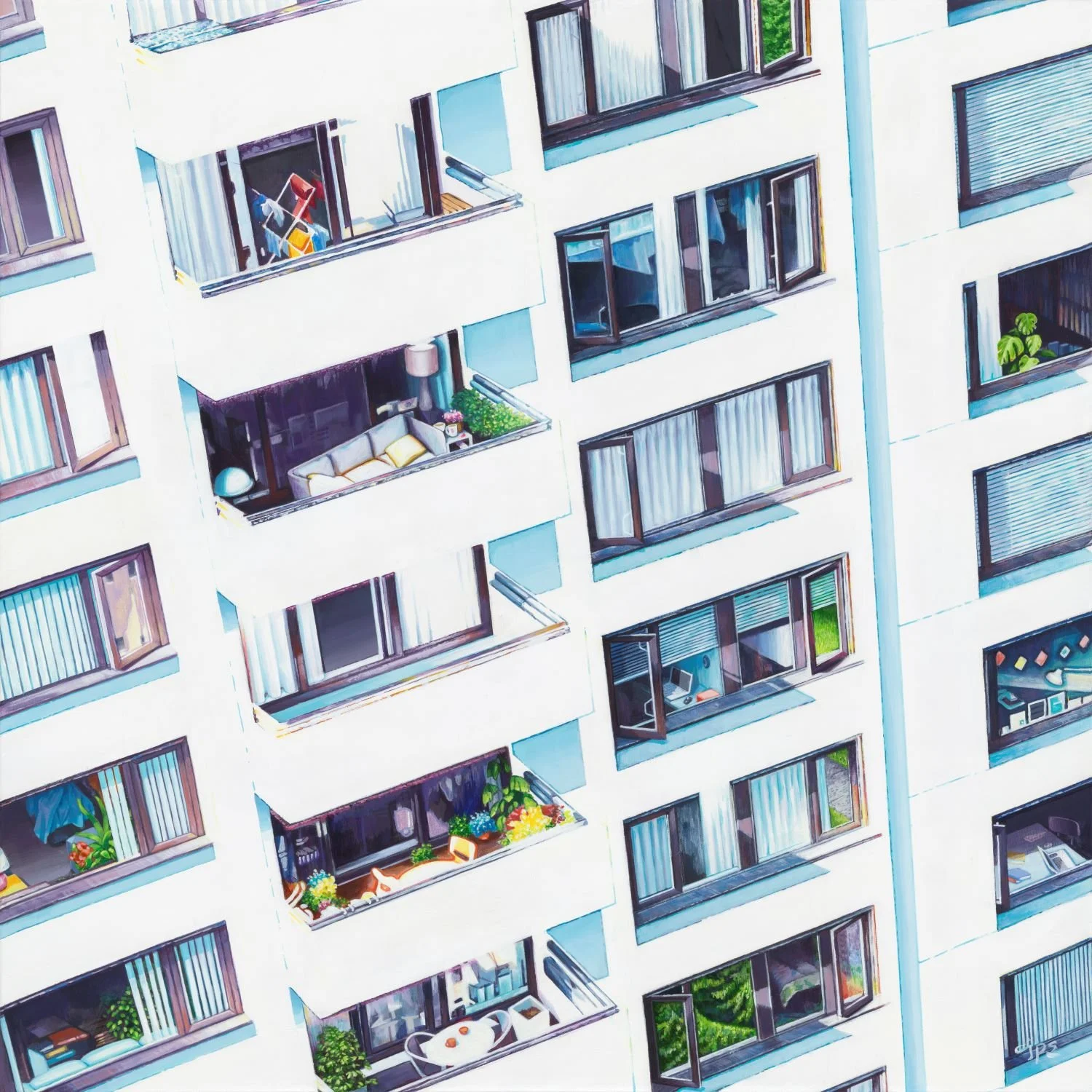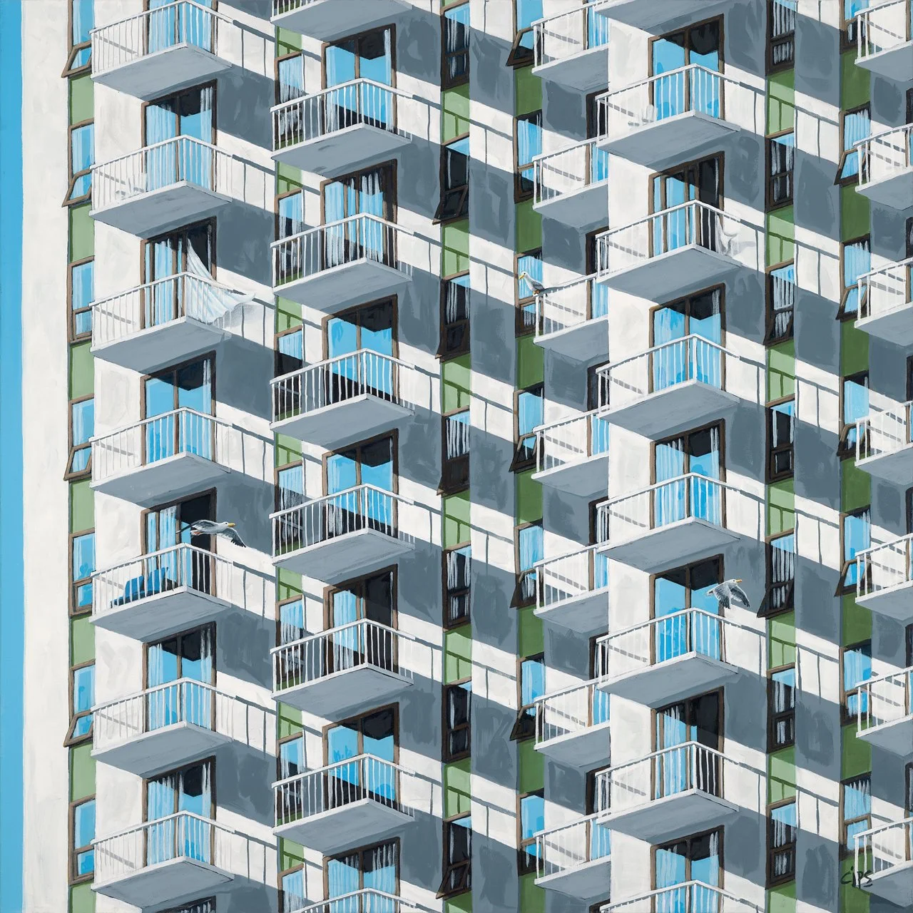 A look from a 20th-floor balcony from one residential tower to another in Vancouver’s West End. These apartment blocks fascinate me, both for the patterns they create in the skyline and the way their monolithic facades hide in plain sight the colourful stories of all who live inside.